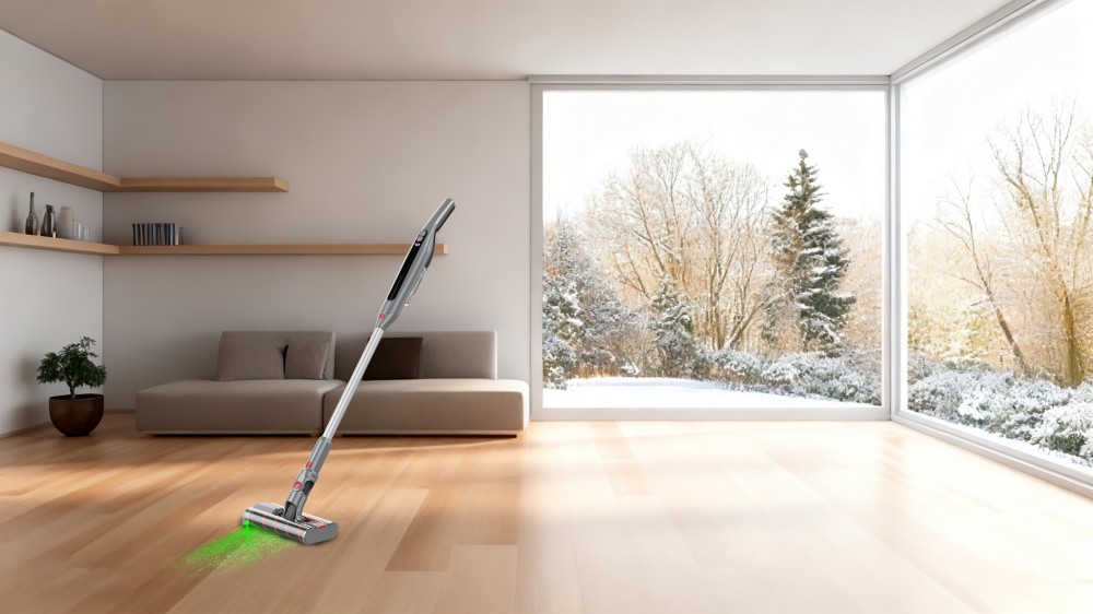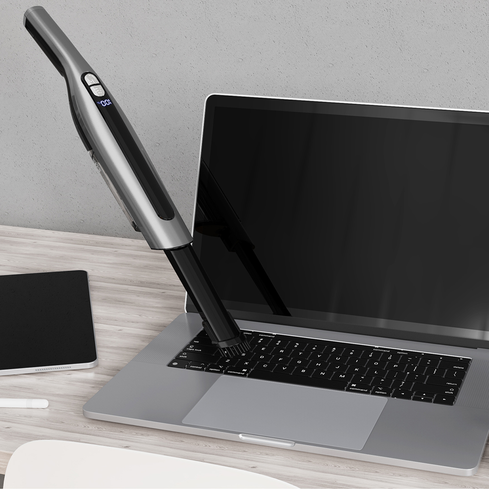 ● The brushless motor has strong suction/Power percentage display/ 4-layers filtering